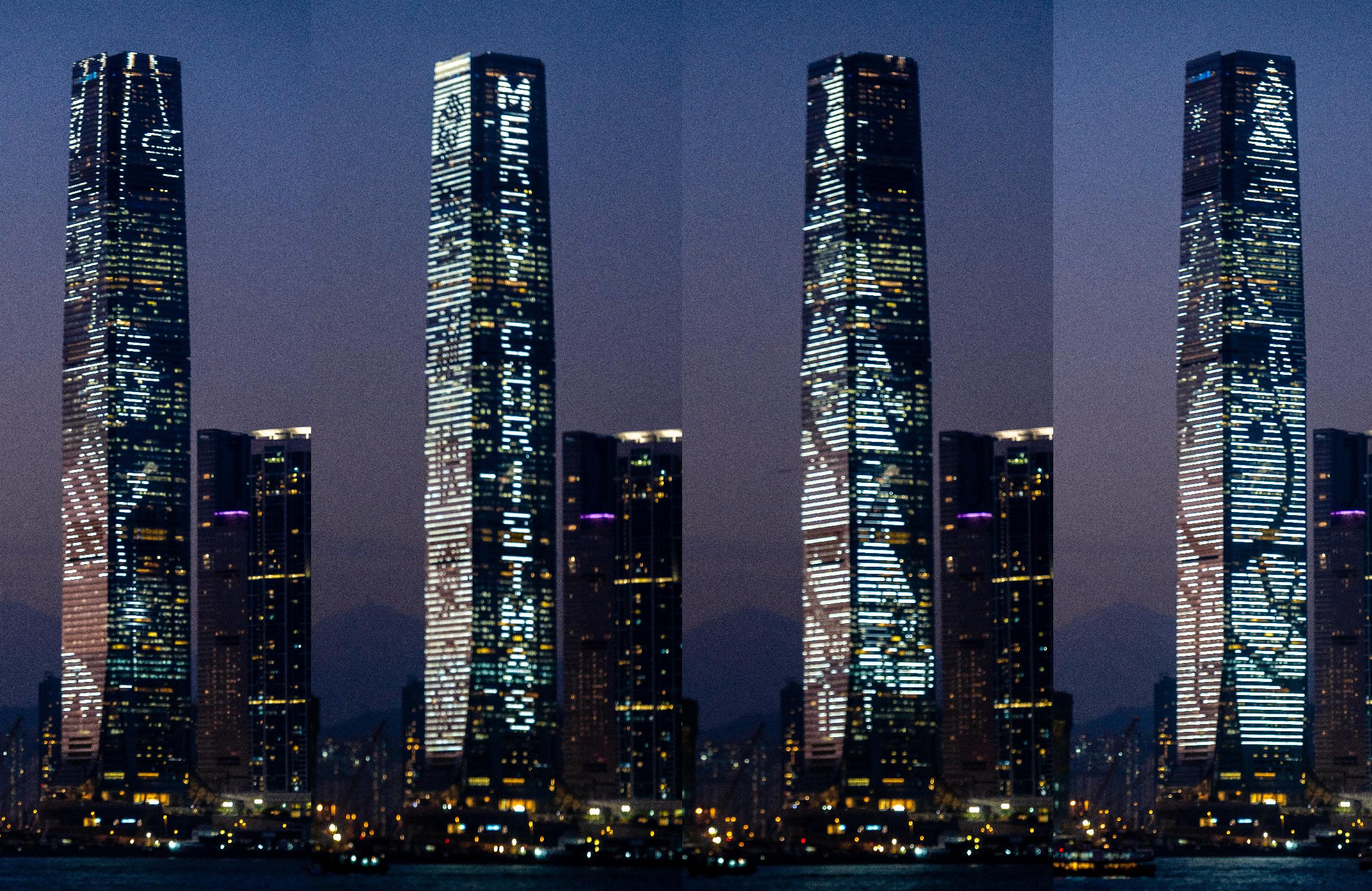 Victoria Harbour skyline lights up with Hong Kong's tallest electronic Christmas tree